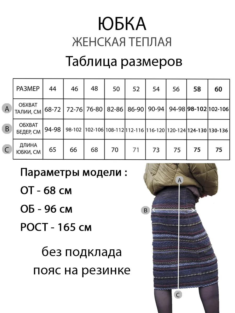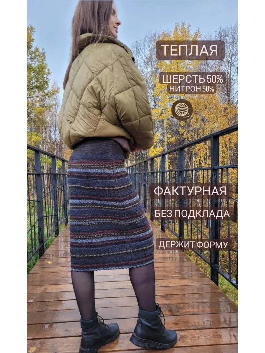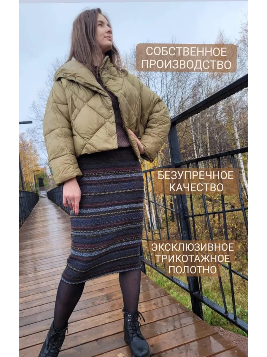 Юбка миди женская трикотажная теплая на резинке. В ней вы будете чувствовать себя комфортно и стильно. Выполнена из приятной и мягкой трикотажной пряжи. Фактурное дизайнерское полотно - это авторская разработка собственного производства. Сибирский эксклюзив. Основной почерк бренда ЛИАТОП - удивительное и гармоничное цветовое сочетание полос: черных, серых, бежевых, белых. Удобный мягкий пояс на резинке позволяет регулировать высокую и среднюю посадку, комфортно садиться на талию, отлично подходит для беременных. Длина юбки ниже колен подойдет как для высоких, так и для женщин среднего роста, варьируется в зависимости от размера. Изделие классического прямого силуэта, без подклада, без молнии-застежки и пуговиц, не вытягивается, неприхотливое в уходе, сезон осень-зима. Преимущество данной базовой модели натуральный состав 50% шерсть, сохраняет тепло, а содержание нитрона придает долговечность изделию. Вязаная юбка - яркая альтернатива джинсовым, кожаным, плиссированным юбкам, брюкам для прогулок в холодное время года. Юбка-карандаш сочетается с любым верхом, можно создавать интересные повседневные образы. Подходит всем возрастным категориям женщин, для больших размеров, прекрасный подарок девушке, сестре, маме, дочке, коллеге. ЛИАТОП - качество на высоте! Тепло наших рук для вас!