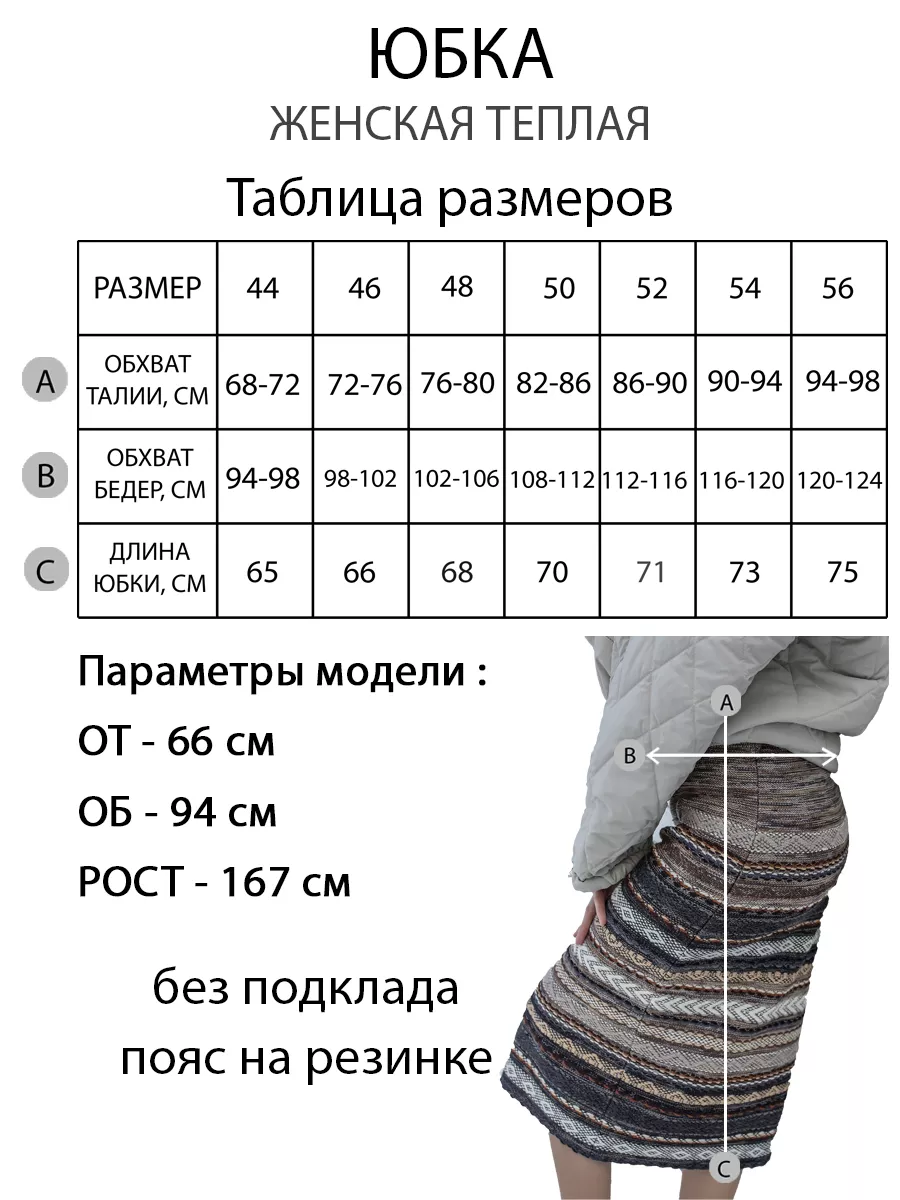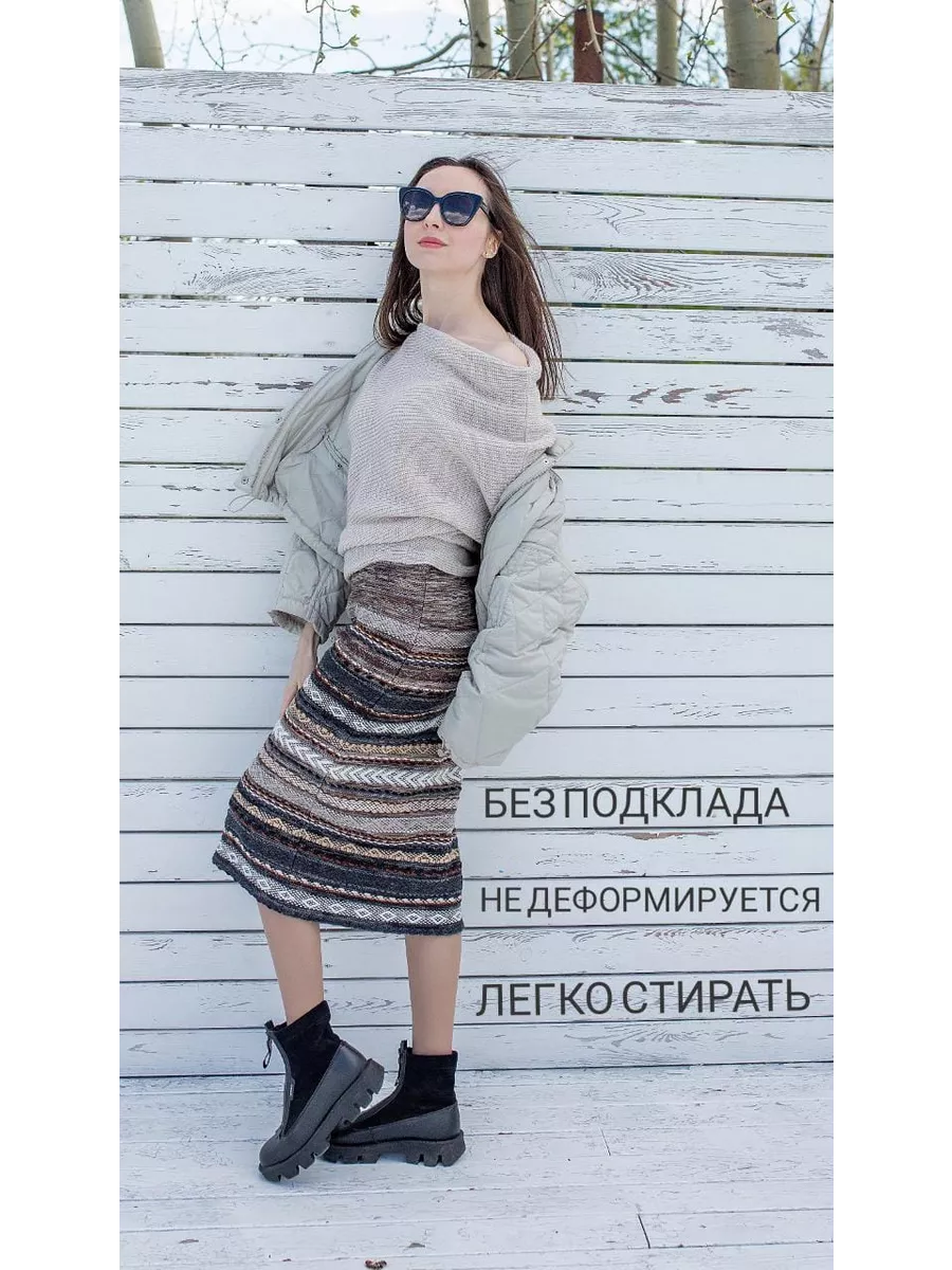 Юбка миди женская трикотажная теплая на резинке. В ней вы будете чувствовать себя комфортно и стильно. Выполнена из приятной и мягкой трикотажной пряжи. Фактурное дизайнерское полотно - это авторская разработка собственного производства. Сибирский эксклюзив. Основной почерк бренда ЛИАТОП - удивительное и гармоничное цветовое сочетание полос: черных, серых, бежевых, белых. Удобный мягкий пояс на резинке позволяет регулировать высокую и среднюю посадку, комфортно садиться на талию, отлично подходит для беременных. Длина юбки ниже колен подойдет как для высоких, так и для женщин среднего роста, варьируется в зависимости от размера. Изделие классического прямого силуэта, без подклада, без молнии-застежки и пуговиц, не вытягивается, неприхотливое в уходе, сезон осень-зима. Преимущество данной базовой модели натуральный состав 50% шерсть, сохраняет тепло, а содержание нитрона придает долговечность изделию. Вязаная юбка - яркая альтернатива джинсовым, кожаным, плиссированным юбкам, брюкам для прогулок в холодное время года. Юбка-карандаш сочетается с любым верхом, можно создавать интересные повседневные образы. Подходит всем возрастным категориям женщин, для больших размеров, прекрасный подарок девушке, сестре, маме, дочке, коллеге. ЛИАТОП - качество на высоте! Тепло наших рук для вас!