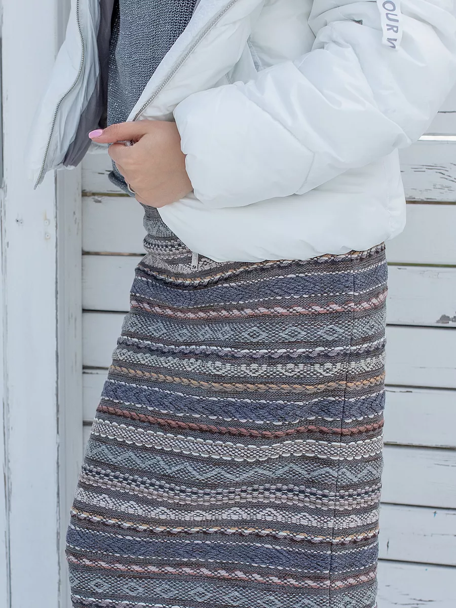Юбка миди женская трикотажная теплая на резинке. В ней вы будете чувствовать себя комфортно и стильно. Выполнена из приятной и мягкой трикотажной пряжи. Фактурное дизайнерское полотно - это авторская разработка собственного производства. Сибирский эксклюзив. Основной почерк бренда ЛИАТОП - удивительное и гармоничное цветовое сочетание полос: черных, серых, бежевых, белых. Удобный мягкий пояс на резинке позволяет регулировать высокую и среднюю посадку, комфортно садиться на талию, отлично подходит для беременных. Длина юбки ниже колен подойдет как для высоких, так и для женщин среднего роста, варьируется в зависимости от размера. Изделие классического прямого силуэта, без подклада, без молнии-застежки и пуговиц, не вытягивается, неприхотливое в уходе, сезон осень-зима. Преимущество данной базовой модели натуральный состав 50% шерсть, сохраняет тепло, а содержание нитрона придает долговечность изделию. Вязаная юбка - яркая альтернатива джинсовым, кожаным, плиссированным юбкам, брюкам для прогулок в холодное время года. Юбка-карандаш сочетается с любым верхом, можно создавать интересные повседневные образы. Подходит всем возрастным категориям женщин, для больших размеров, прекрасный подарок девушке, сестре, маме, дочке, коллеге. ЛИАТОП - качество на высоте! Тепло наших рук для вас!