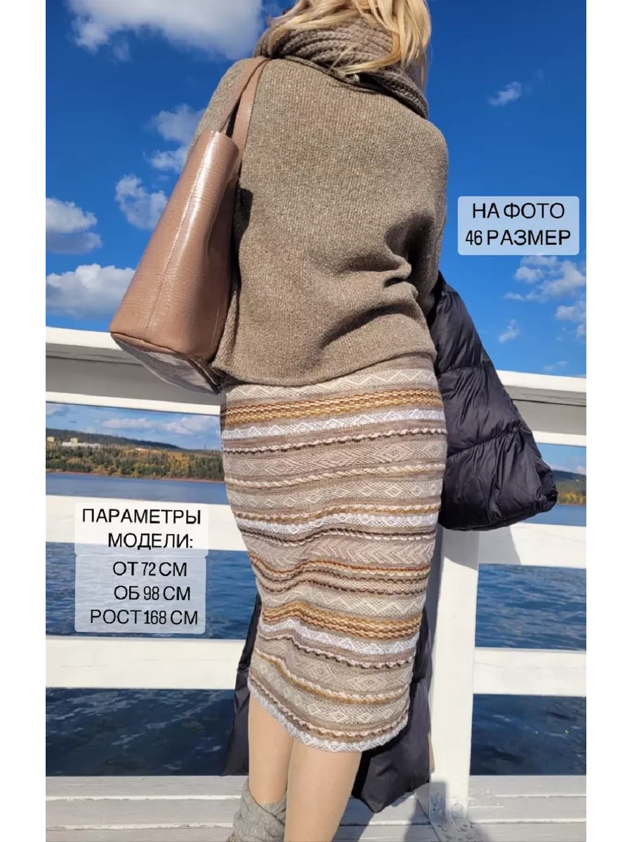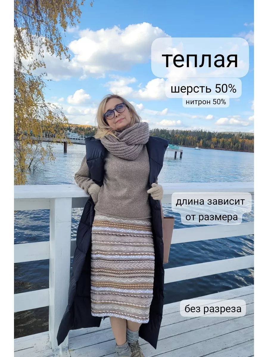Юбка миди женская трикотажная теплая на резинке. В ней вы будете чувствовать себя комфортно и стильно. Выполнена из приятной и мягкой трикотажной пряжи. Фактурное дизайнерское полотно - это авторская разработка собственного производства. Сибирский эксклюзив. Основной почерк бренда ЛИАТОП - удивительное и гармоничное цветовое сочетание полос: черных, серых, бежевых, белых. Удобный мягкий пояс на резинке позволяет регулировать высокую и среднюю посадку, комфортно садиться на талию, отлично подходит для беременных. Длина юбки ниже колен подойдет как для высоких, так и для женщин среднего роста, варьируется в зависимости от размера. Изделие классического прямого силуэта, без подклада, без молнии-застежки и пуговиц, не вытягивается, неприхотливое в уходе, сезон осень-зима. Преимущество данной базовой модели натуральный состав 50% шерсть, сохраняет тепло, а содержание нитрона придает долговечность изделию. Вязаная юбка - яркая альтернатива джинсовым, кожаным, плиссированным юбкам, брюкам для прогулок в холодное время года. Юбка-карандаш сочетается с любым верхом, можно создавать интересные повседневные образы. Подходит всем возрастным категориям женщин, для больших размеров, прекрасный подарок девушке, сестре, маме, дочке, коллеге. ЛИАТОП - качество на высоте! Тепло наших рук для вас!